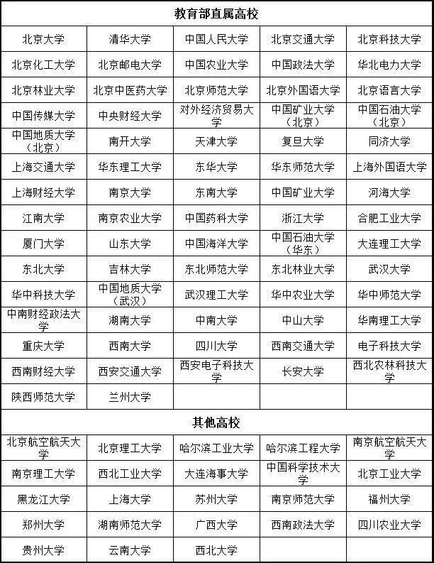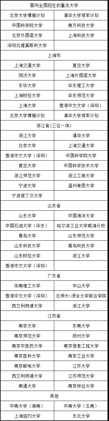 说明:上表中面向全国招生的部分高校实际只面向部分省市招生,具体以各校当年招生简章为准。