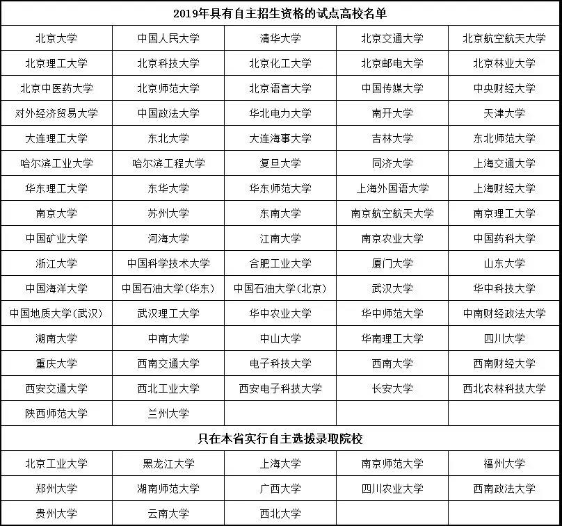 具有自主招生招生资格的院校总共95所,但是有5所大学不进行实际招生,那么实际上自主招生院校就是90所。