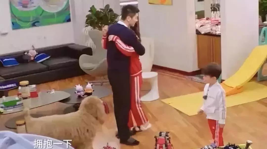 杜江进门时,总是先抱抱妻子,然后才去抱儿子嗯哼。夫妻两人毫无避讳的在嗯哼面前拥抱,展现他们的恩爱。